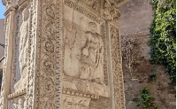 アルジェンターリ門に掘られたレリーフ(撮影:筆者) ローマの街には、街角の碑文、教会の壁、噴水の銘文など、今も都市の中にラテン語が生き続けているーー高校2年生からラテン語の学習を始め、X(旧Twitter)などでラ...
